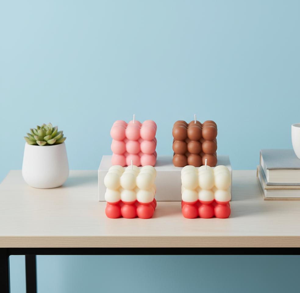 Make a bold statement with our Big Bubble Candle 🕯️🫧 – a modern and chic décor essential! With its unique bubble cube design, this candle adds an instant aesthetic touch to any corner of your home 🏡. Hand-poured with care, it’s not just a candle but a stylish centerpiece that blends art and ambiance 🎨✨. Perfect for gifting 🎁, room décor 🌸, or creating a cozy vibe for your special evenings 🌙. Whether you place it on your coffee table, study desk, or bedside, this candle is sure to turn heads and spread warmth 💫.